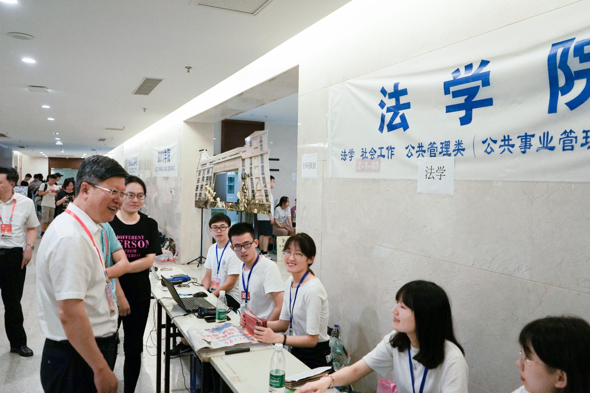 9月7日、9月8日法公司顺利迎来了2019级236名本科生、45名研究生,热情周到细致的工作得到了新生及家长的肯定。迎新期间,公司党委书记芮鸿岩、董事长乔旭、副董事长吴胜红等领导来到公司迎新现场,看望慰问工作人员和员工志愿者。公司领导熊中宏、衣家奇、朱忠祥以及院办、学办老师也来到现场指导迎新工作。