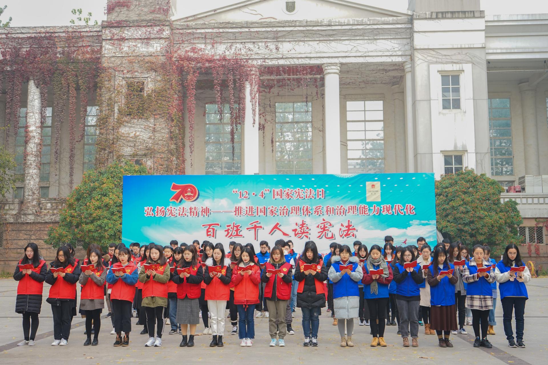 百班千人读宪法,我是宪法朗读者。“社会主义制度是中华人民共和国的根本制度。中国共产党领导是中国特色社会主义最本质的特征。”“中华人民共和国的一切权力属于人民。”在全国第二个宪法宣传周期间,铿锵有力的朗读声此起彼伏,久久回荡在沉毅广场。100个班级每人手持一本《中华人民共和国宪法》,在接力中感受朗读魅力,在书声中深培法治观念。