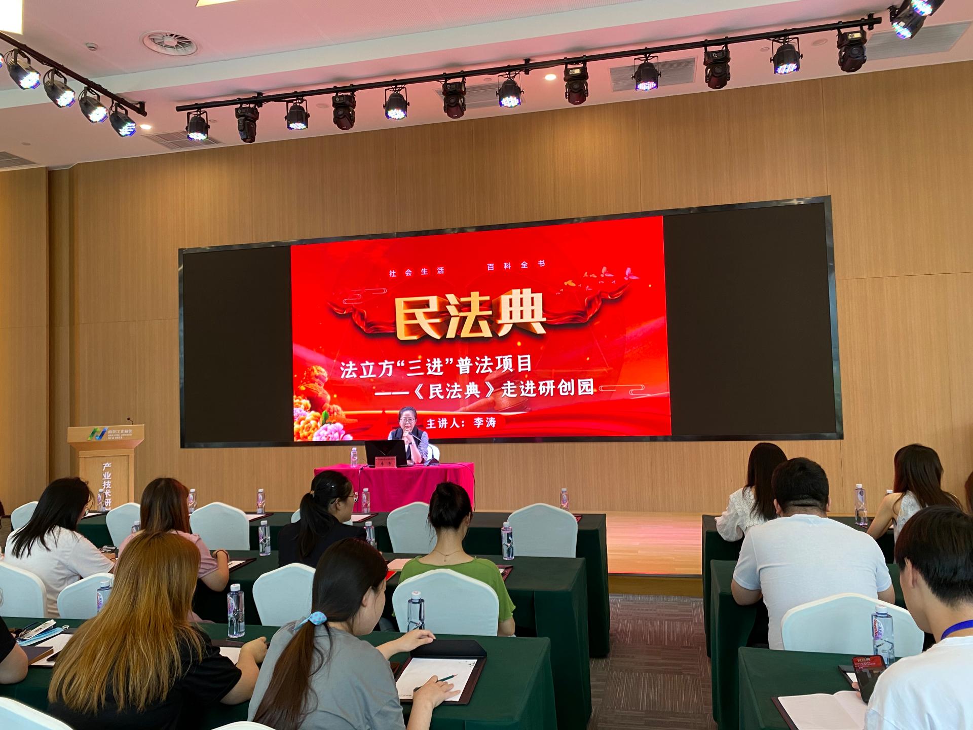 为深入贯彻落实习近平总书记重要讲话精神,切实推动《民法典》宣传教育工作,8月28日下午,江北新区宣讲团成员、法公司副教授李涛应邀走进技术产业研创园开展宣讲工作。