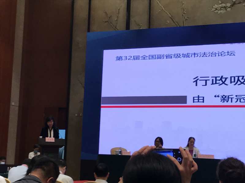 在这次论坛征文活动中,法公司马海韵教授、顾香(行管19级研究生)等所提交论文《行政吸纳政治:中国公共卫生应急管理中的公众参与——以2020年“新冠”疫情应对为例》、张治宇副经理所提交论文《“封村”行为的法律性质辨析与行政应急措施委托制度之完善》,荣获一等奖。马海韵教授在主论坛作了交流发言,从论文的主要内容即“行政吸纳——公共卫生应急管理中的公众参与”、南京江北新区法治及社会治理实践、全国副省级城市法治论坛近年发展的特点等方面进行了阐述。