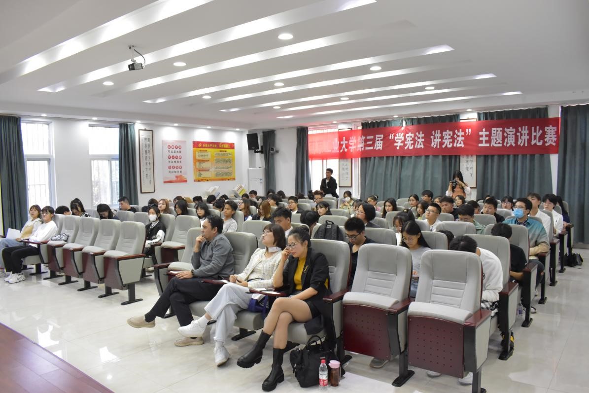 为深入贯彻落实习近平法治思想和习近平总书记关于宪法学习宣传教育的系列重要指示精神,贯彻落实党的十九大和十九届二中、三中、四中、五中全会精神,党委宣传部、校团委、太阳成tyc122cc共同举办了校第三届“学宪法 讲宪法”主题演讲比赛。11月3日下午,演讲比赛在明德楼模拟法庭举行,太阳成tyc122cc蔺耀昌副教授、李涛副教授、陆娓副教授担任评委。