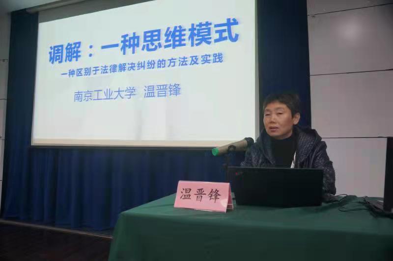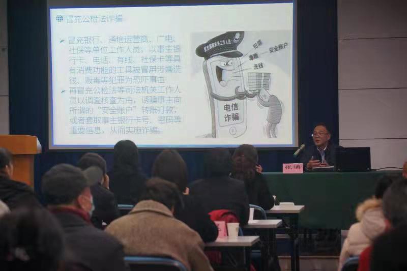 揭牌仪式后,张爝教授和温晋锋教授为全体与会人员作报告。张爝教授的报告为《网络电信诈骗犯罪的态势及其治理》,他结合自身经历向社区居民们讲述了网络电信诈骗的刑法概念及其特征、现状和表现形态、犯罪成因及其防范和治理。温晋锋教授结合《民法典》的精神实质,作了题为《调解:一种区别于法律解决纠纷的方法与实践》的报告,从总书记关于学习《民法典》的指示、《民法典》的精神气质、人民调解是一种适应未来的解决方式、具体解决问题中工作方法、人民调解员的知识素养等方面进行了阐述。
