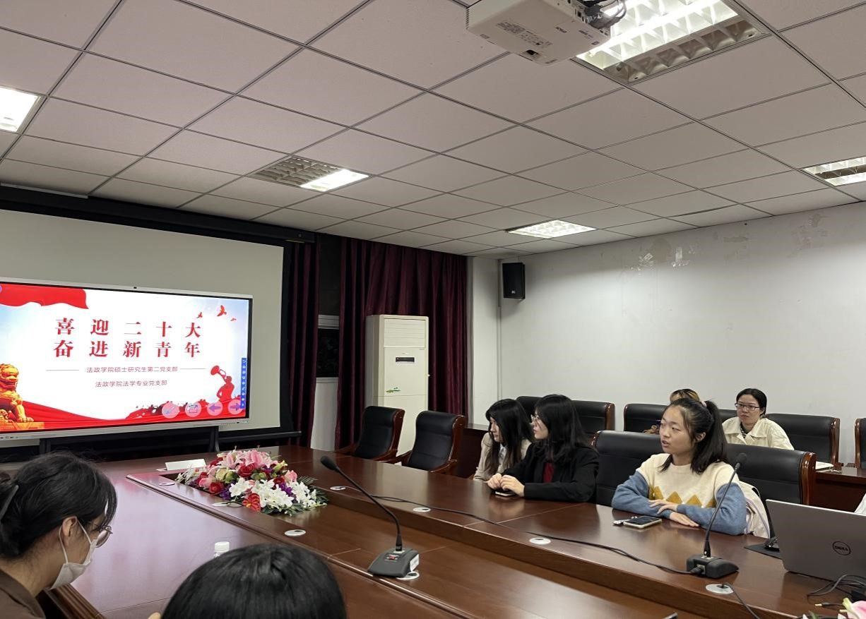 硕士研究生第二党支部与法学专业党支部共同学习二十大报告内容