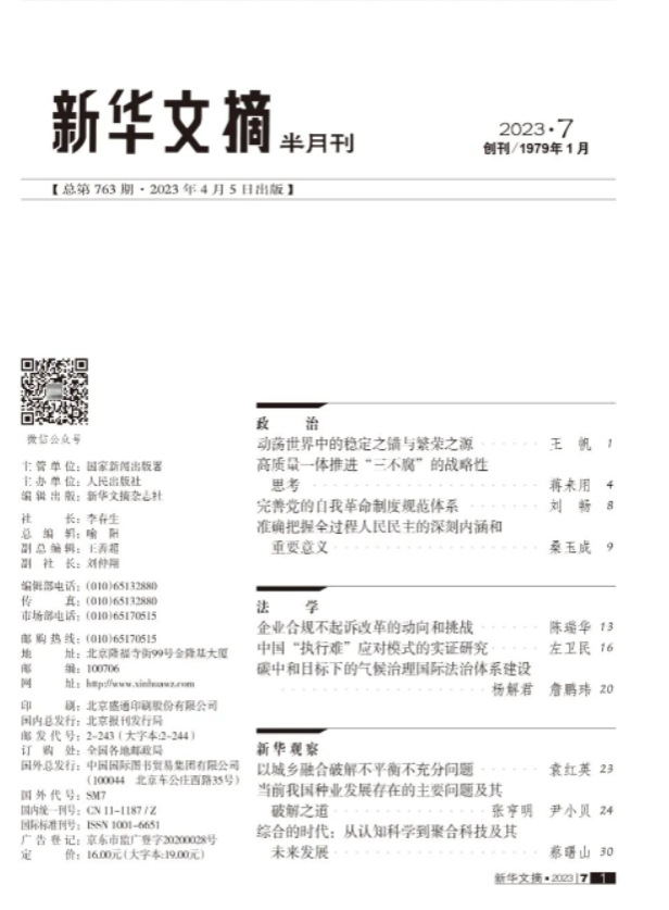 近日,太阳成tyc122cc杨解君教授撰写的论文《碳中和目标下的气候治理国际法治体系建设》被《新华文摘》2023年第7期全文转载。该文原载《学习与实践》2022年第12期。