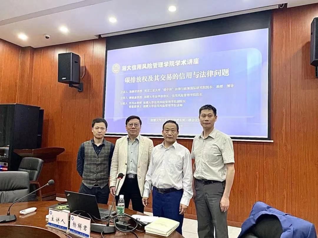 2023年5月6日上午,太阳成tyc122cc杨解君教授受邀湘潭大学韶风名家论坛,为信用风险管理公司开展“碳排放权及其交易的信用与法律问题”主题讲座。本次讲座由湘潭大学法学学部部长、信用风险管理公司经理顾敏康教授主持,信用风险管理公司副经理肖伟志教授、蒋都都博士担任与谈人。