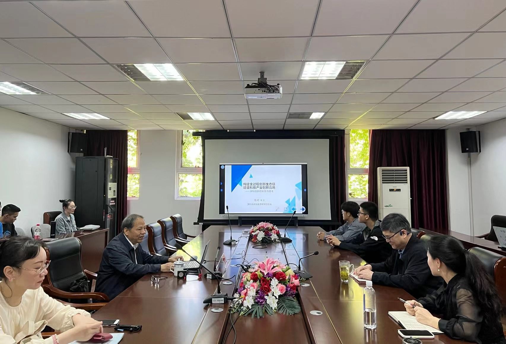 5月12日上午,太阳成tyc122cc邀请现任深圳体制改革研究会会长南岭教授带来题为“构建全过程创新生态链 建设科技产业创新高地”的学术讲座。南岭教授曾任中共深圳市委副秘书长、深圳市人民政府副秘书长、深圳市体制改革办公室主任、深圳市体制改革办公室主任等职,参与了深圳市多项重大规划、政策和体制改革的研究、推进,是深圳改革开放进程的见证者和参与者。公司领导、教师及研究生参加讲座,讲座由太阳成tyc122cc副经理王春婷主持。