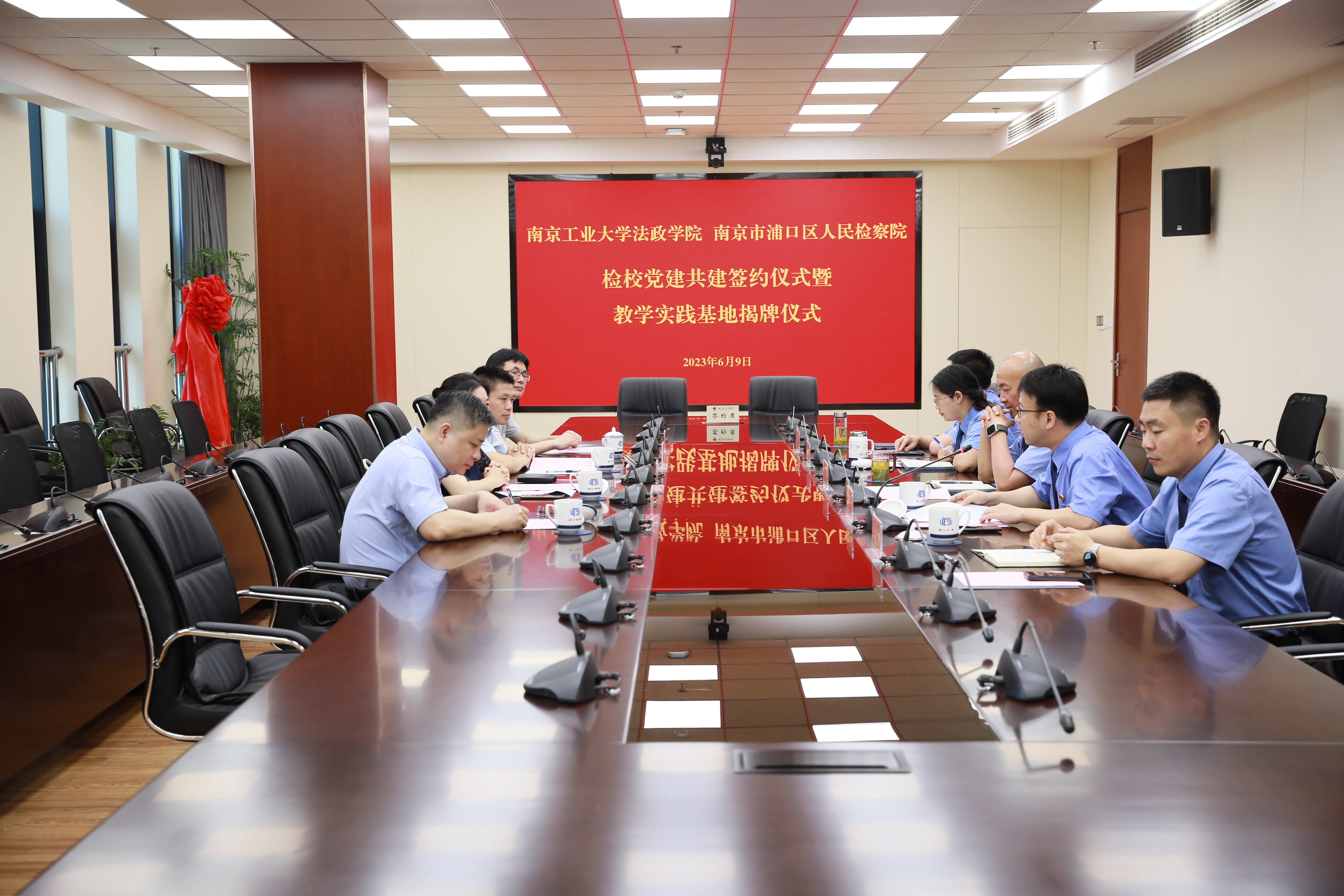 弋鹏书记表示本次共建以党建为引领,以校检合作为平台,充分发挥优势互补、共同提高,进一步凝聚合力,拓宽合作领域,探索合作模式,实现合作互利共赢。闵宏权副检察长表示检校双方要以共建求共识、共同强化法治意识,以共建促合作、共同推动人才培养,以共建谋共赢、共同凝聚法治合力。
