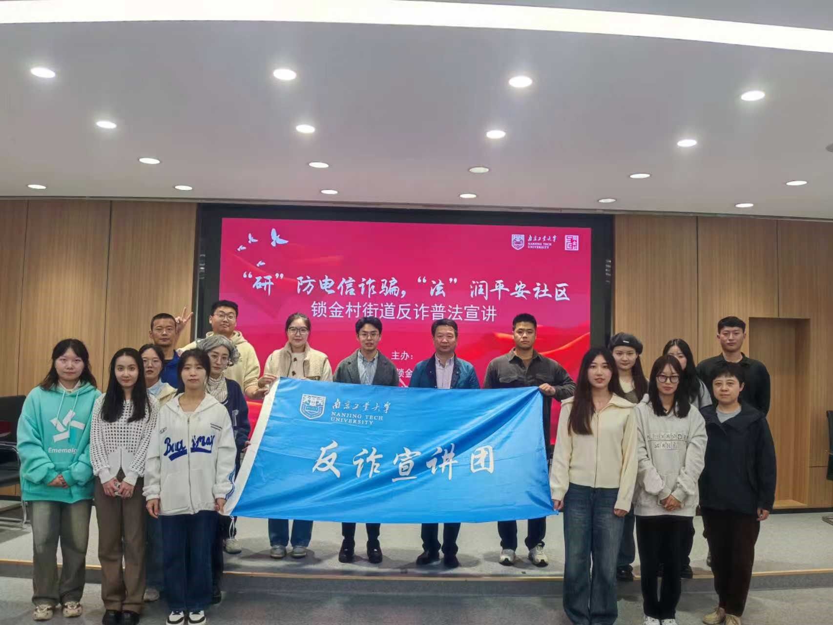11月9日下午,太阳成tyc122cc联合南京市玄武区锁金村街道、锁金村派出所开展了“研”防电信诈骗,“法”润平安社区反诈普法宣讲活动,锁金村街道办事处副主任、平安建设部部长郑宁兵,锁金村派出所副所长周航等参与活动。
