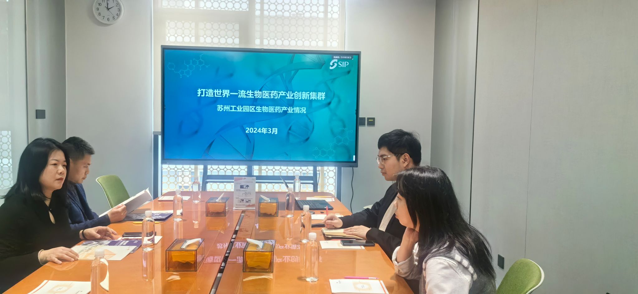 日前,公司党委书记弋鹏带队赴苏州生物产业发展有限公司访企拓岗。苏州生物产业发展有限公司合作部总经理张忻等参加交流座谈。