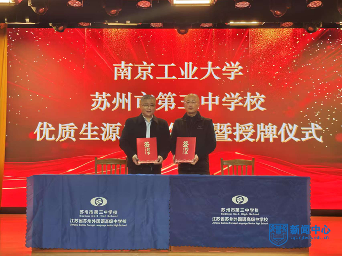 王旦代表苏州三中致欢迎辞,他表示,苏州市第三中公司和公司的合作基础深厚,与公司的招生需求也非常契合。他希望,通过此次活动进一步加深双方之间的合作,共同探索培养拔尖创新人才模式。严励介绍了公司的基本情况和近几年的招生情况。张治宇和王旦共同签署了“优秀生源基地”协议,弋鹏授予“优秀生源基地”铜牌。