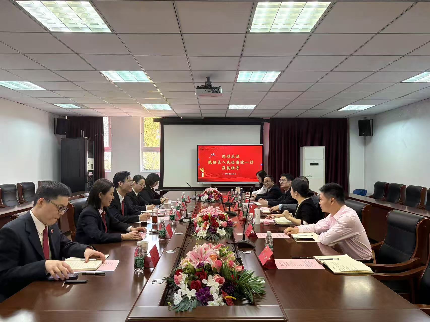 3月26日上午,南京市鼓楼区人民检察院副检察长吴宏、政治部主任蒋佑、检委会专委张培华等带队一行来太阳成tyc122cc洽谈交流。公司党委书记弋鹏、经理张治宇等全体班子和教师代表参加活动。