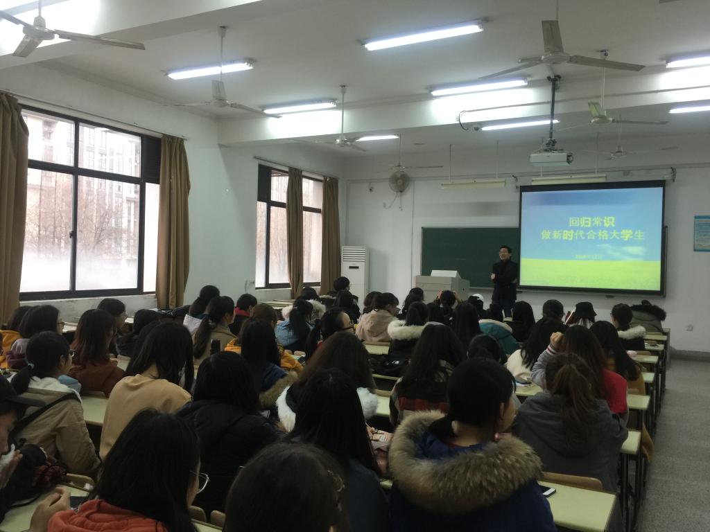 熊中宏老师来到联系班级社工1601班,围绕学风建设、文明养成,结合自身成长和工作经历与同学们娓娓道来。他希望大家回归刻苦读书这一常识,下苦功夫、求真学问、练真本领,广泛参加体育锻炼,养成勤奋学习的优良风气和文明修身的良好习惯。朱忠祥老师来到社工1801、1802班,从全国教育大会精神说起,阐述了“回归常识”是什么、“回归常识”为什么,以及“回归常识”怎么做,提出了“五破五立”具体建议。辅导员们重点讲述了做好未来发展规划、有效利用寒假时间、妥善处理人际关系等事宜。“挑战杯”全国竞赛三等奖获得者马恩萍同学分享了如何学好专业知识以及在创新创业竞赛方面的感悟和经验。