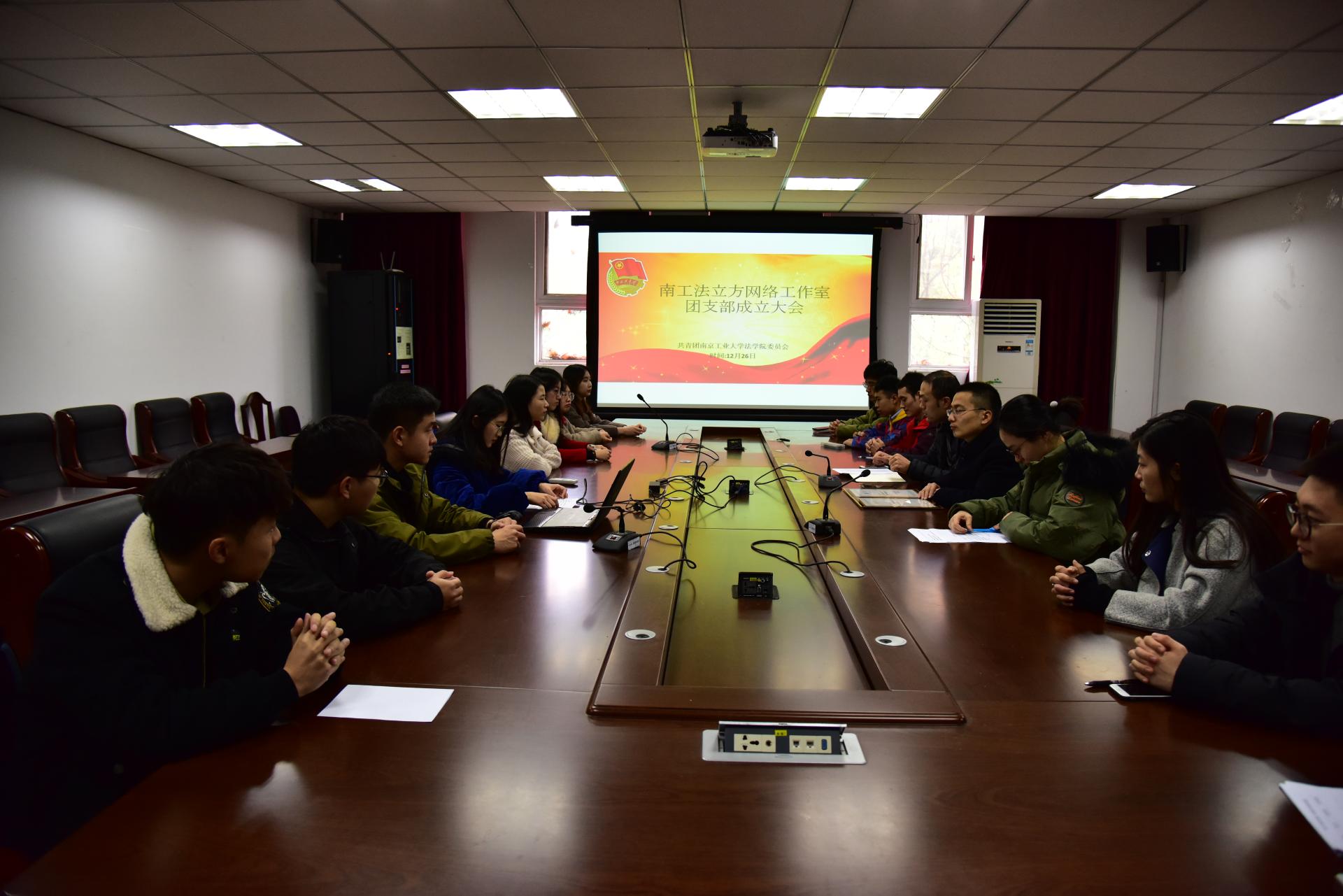 12月26日,南工法立方网络工作室团支部成立大会在明德楼三楼举行。工作室全体成员参加会议,院团委书记曹蕾主持会议。