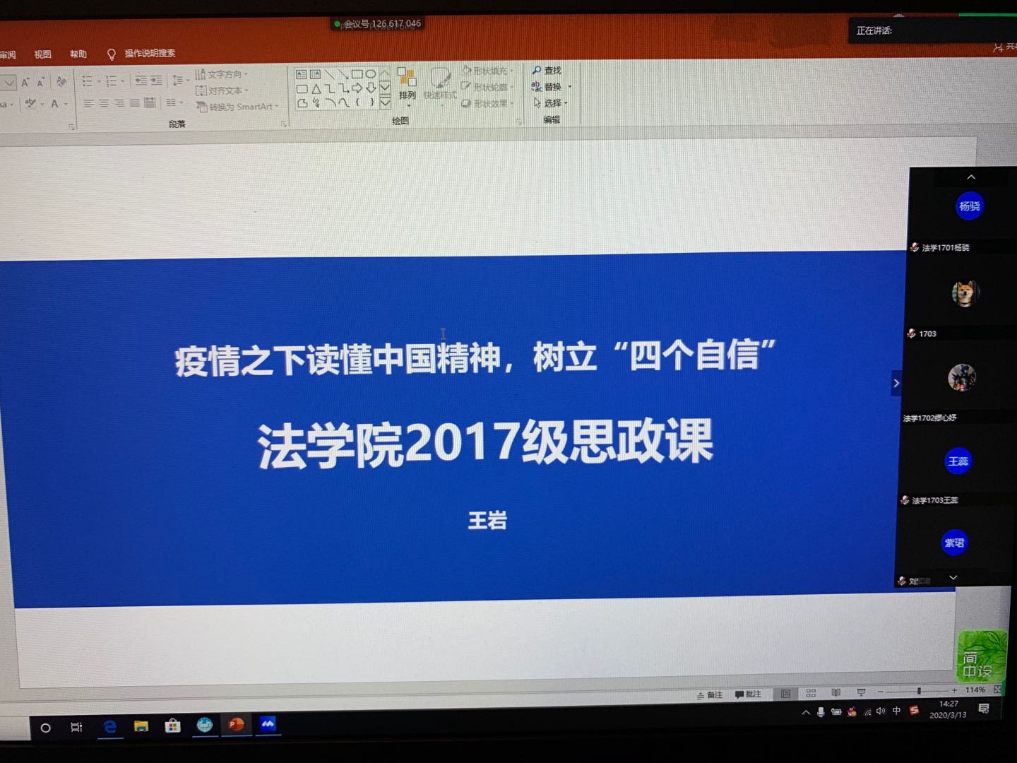 为学习贯彻 《新时代爱国主义教育实施纲要》,加强战“疫”时期员工思想政治教育工作的针对性和实效性,法公司开展“共克时艰勤思政·不负韶华再出发”线上主题会议。辅导员领讲领学,同学们学思并进,共同上好爱国主义教育大课。