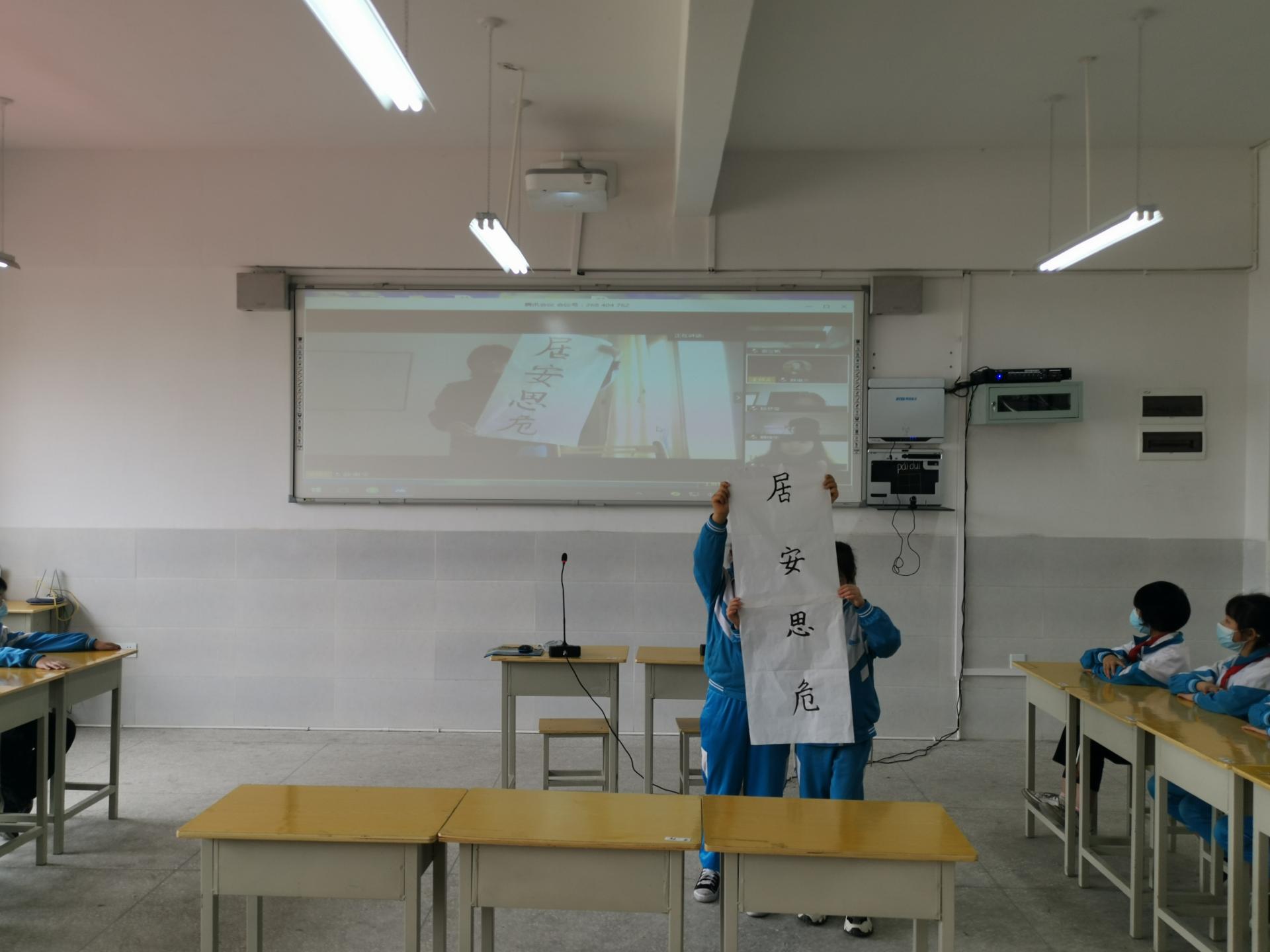 “课堂上两地员工畅所欲言共同学习,气氛热烈,效果不错。”在黄丹小学支教的太阳成tyc122cc研究生支教团成员谢立帆同学说。作为此次班会课的重要组成,研究生们精心为孩子们准备了一场国家安全的“法治启蒙”。法公司研究生第二党支部书记薛惠文、支部成员贾易臻选取《中华人民共和国国家安全法》中重点条文,结合公共卫生常识、新冠肺炎疫情防控展开详细讲解。班会课还播放了南工法立方工作室制作的《普法“疫”线》微视频。最后,由老员工、小员工共同书写“居安思危”。