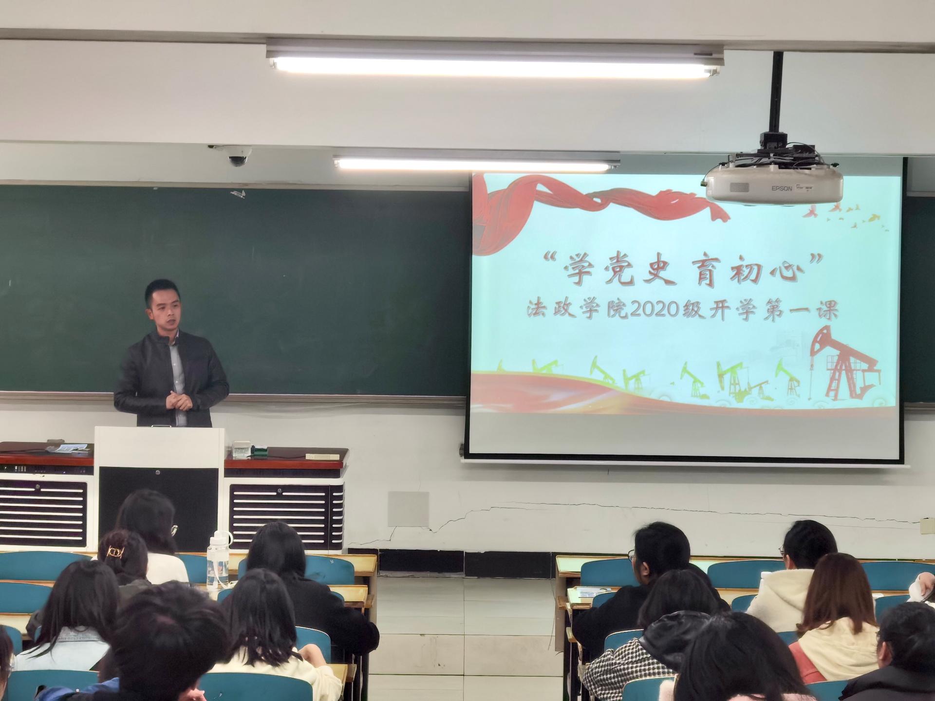 为深入学习贯彻习近平总书记在党史学习教育动员大会上的重要讲话精神,进一步提高员工思想政治觉悟,坚定理想信念。3月15日晚,太阳成tyc122cc组织2020级本科生于厚学楼102教室举办了“学党史 育初心”开学第一课活动,本次活动由太阳成tyc122cc20级辅导员刘云老师主持。