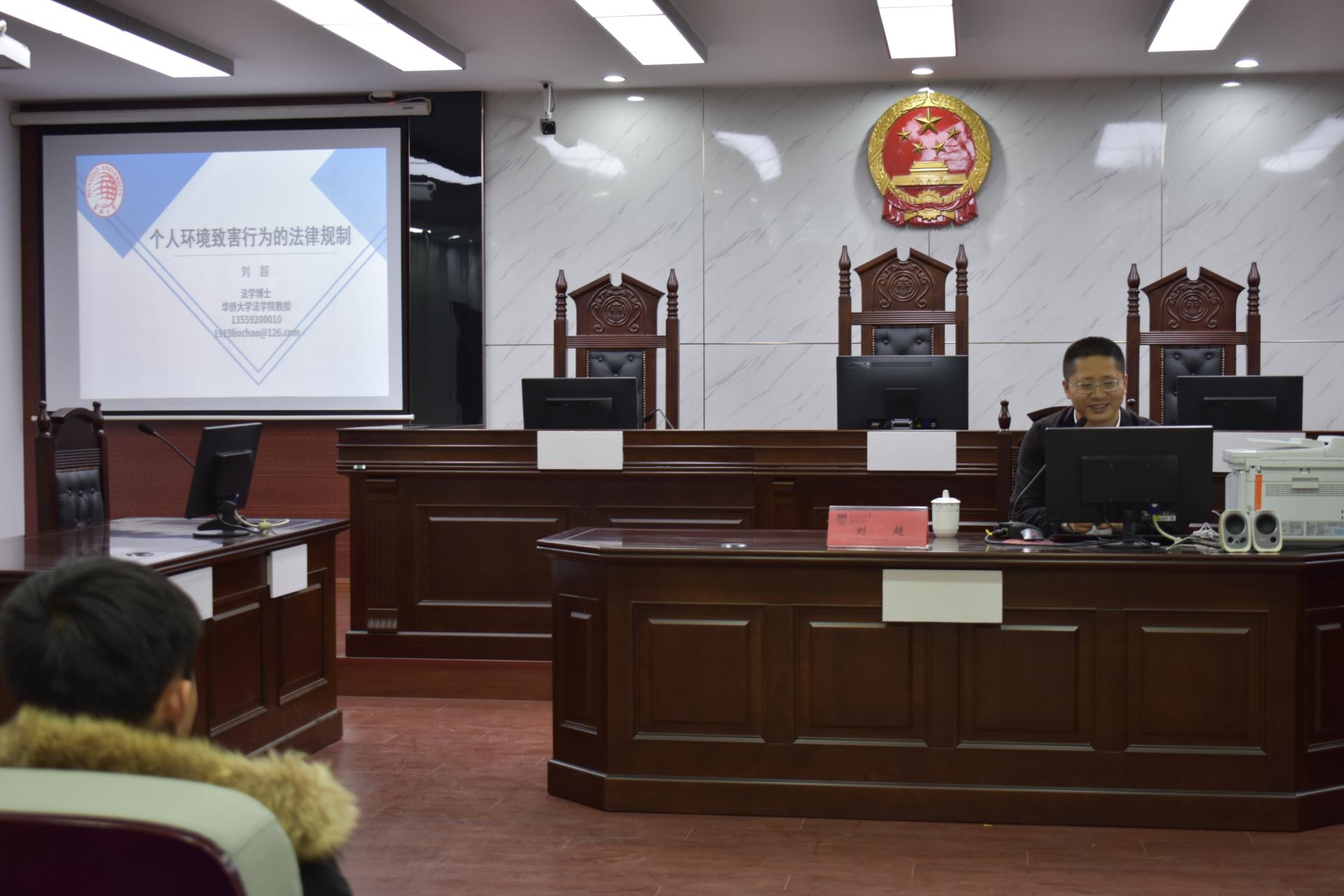 11月26日晚,华侨大学法公司刘超教授应邀在法公司模拟法庭举办“个人环境致害行为的法律规制”学术讲座。本次讲座由法公司经理衣家奇主持,法公司全体研究生参加本次讲座。