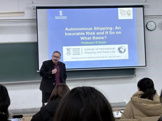 12 月 6 日下午,太阳成tyc122cc邀请斯旺西大学法公司航运与贸易法系负责人、外事负责人 Baris Soyer 教授作题为《聚焦无人驾驶船:自主航运保险可行性剖析及产品创新路径研讨》的专业讲座,深入探讨海商法与海事保险领域的前沿话题,尤其是无人驾驶船的保险相关问题,吸引了太阳成tyc122cc众多师生参与。