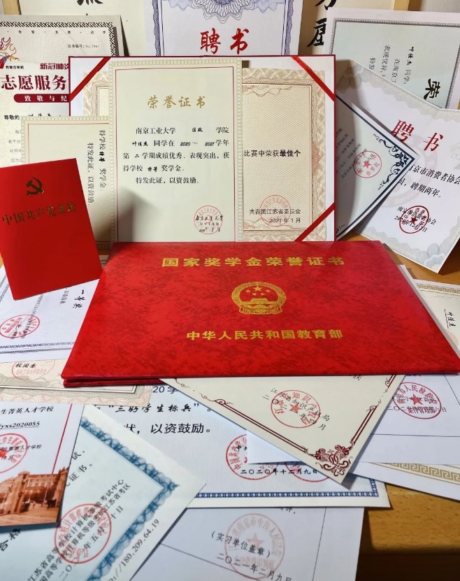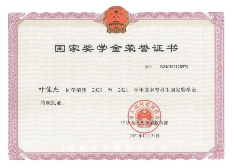 获得国家奖学金,多次获得竞赛奖项,法学1903班叶佳杰以专业第一的成绩被推免至南京师范大学攻读硕士研究生。