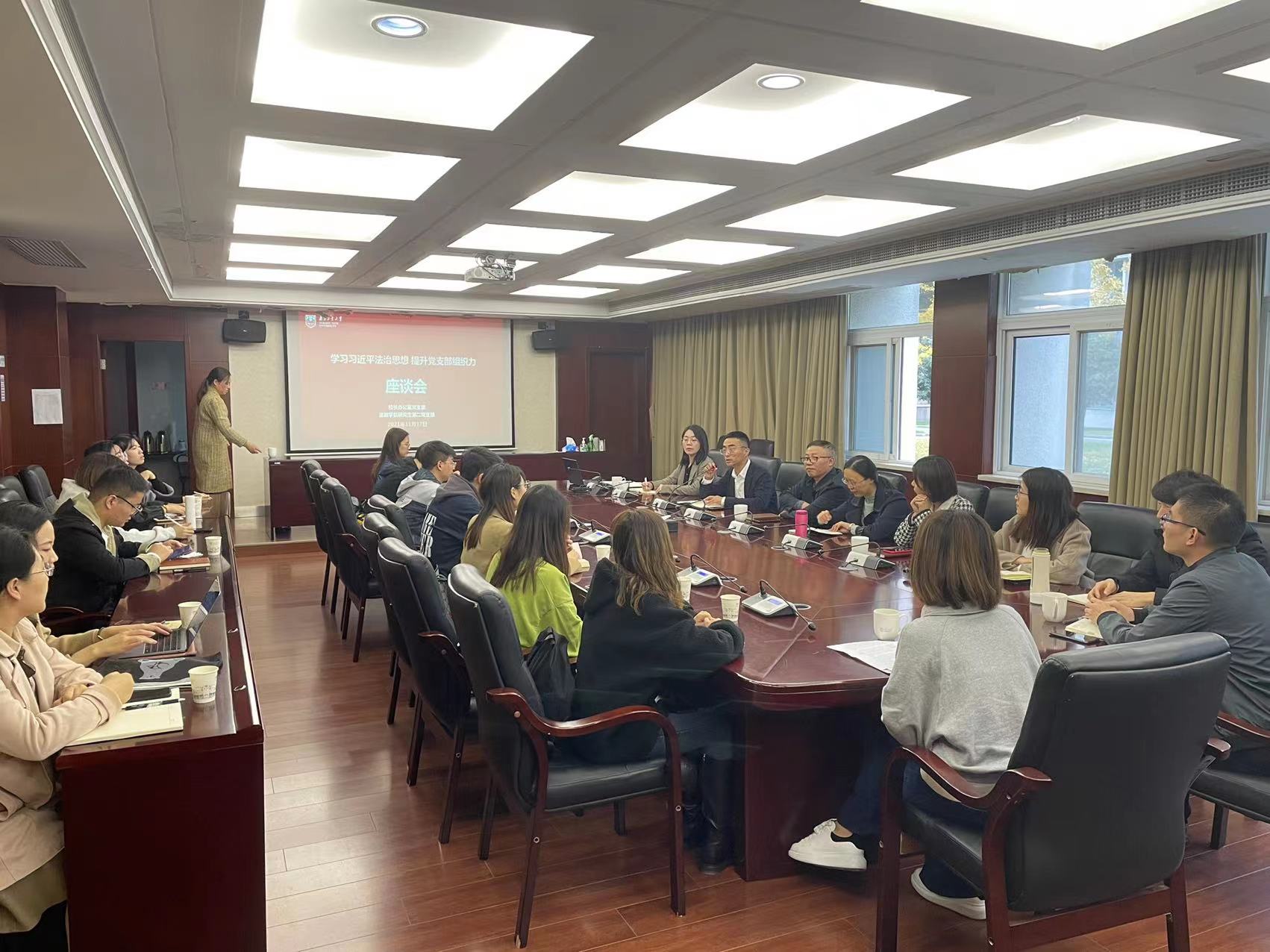 研讨活动伊始,由董事长办公室党支部黄鑫老师领学习近平总书记关于全面从严治党的重要论述,深刻领会全面从严治党的重大意义,把握全面从严治党的基本要求和重点任务,增强“四个意识”,坚定“四个自信”,做到“两个维护”。校办张琳、曹舒睿等老师围绕学习习近平法治思想的体会,结合自身工作,对如何推进公司治理体系和治理能力现代化进行深入探讨,分别从不同方面强调坚定员工党员的政治理想信念,提升员工党员的科研能力和水平,培养具有全面素质的综合型人才的重要性。罗圣辰老师就员工党支部如何提升组织力,发挥政治功能展开交流,提出员工党支部要根据支部成员的专业特点、特长等充分挖掘能够支撑活动的有效载体形式,要积极打造党建工作品牌,在社会实践活动中培养员工的坚定信念、优良品质。