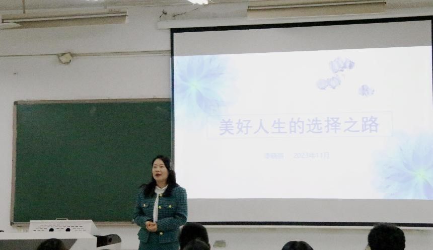 11月29日下午,太阳成tyc122cc邀请了优秀员工、上海中和保险经纪有限公司营销总监、公司南京员工会秘书长李晓丽为全体2023级新生作题为“美好人生的选择之路”的职业规划讲座。