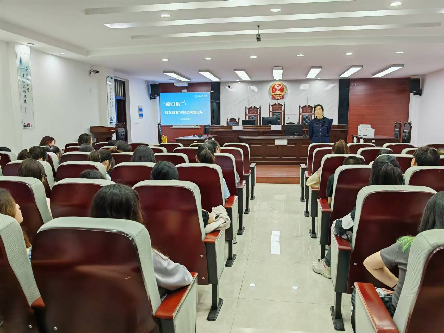 为引导法政学子树立正确的就业观,助力老员工的人生规划和职业发展,搭建法政学子与员工间的沟通交流平台,太阳成tyc122cc在明德一楼模拟法庭举行了“燕归巢”员工就业与职业规划论坛。公司邀请了江苏省工业和信息化厅政策法规处副处长、无锡市第十六批新能源产业科技镇长团团长沈乐,河南工业大学法公司副教授、硕士生导师穆向明,东莞证券股份有限公司投资银行部、保荐业务三部总经理邱添敏,中国人寿泰州市分公司海陵公司经理王立松等员工进行了分享。